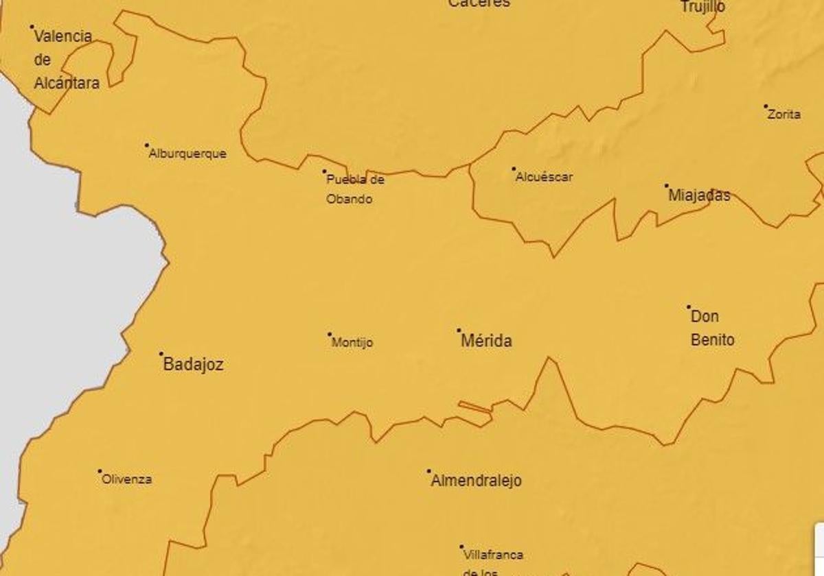 En las Vegas del Guadiana, donde se sitúa Valverde de Leganés, hay alerta naranja desde las 13.00 hasta las 20.59 horas, con temperaturas que podrían alcanzar los 41 grados. Esta alerta se mantiene en el mismo horario para mañana miércoles, pero podrían alcanzarse los 42 grados. El jueves la alerta baja a amarilla con máximas de 39.