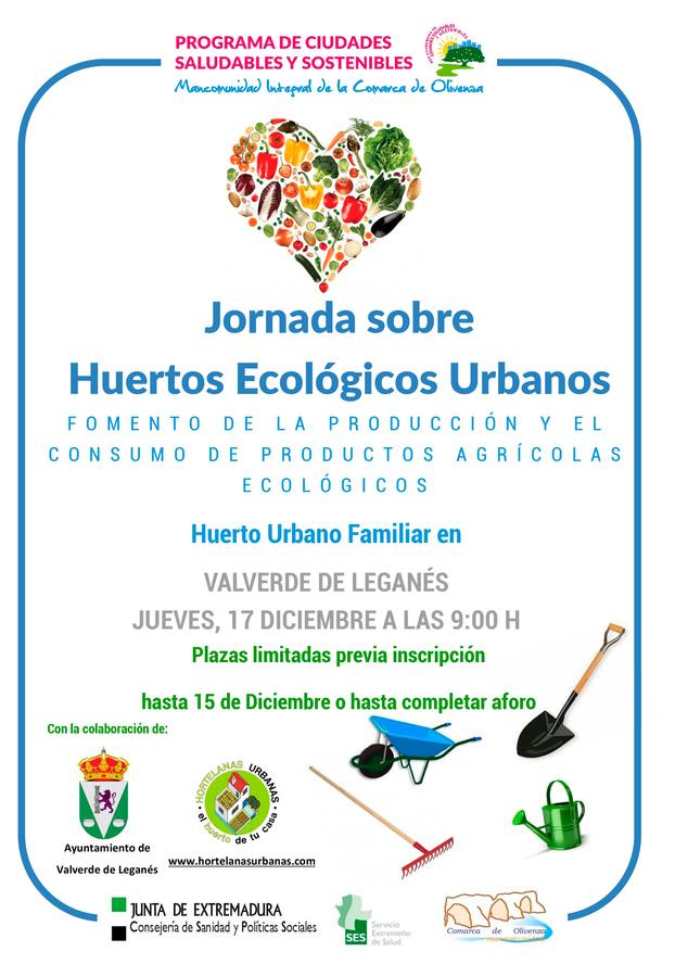 El próximo jueves 17 de diciembre, la Mancomunidad Integral de la Comarca de Olivenza se realizará en Valverde de Leganés, dentro del Programa Ciudades Saludables y Sostenibles, una jornada sobre Huertos Ecológicos Urbanos con el principal objetivo del fomento de la producción y el consumo de productos agrícolas ecológicos. Además, también se realizará una pequeña práctica sobre la realización de un semillero.