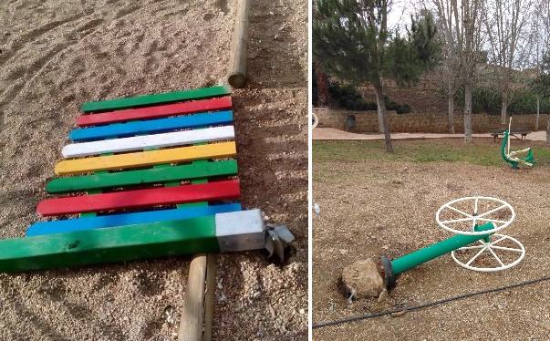 destrozos, roturas de uno de los cristales del salón de usos múltiples, de la tapa de una arqueta de conducción eléctrica y de la manilla de la puerta de los vestuarios. El parque de las Piletas fue otro de los lugares que recibieron estas ingratas visitas, en esta ocasión fue derribado uno de los aparatos para practicar ejercicios, al columpio le han desaparecido los asientos y otro de los aparatos infantiles también ha sufrido daños.