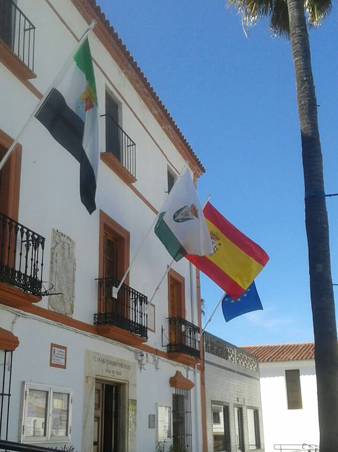 Entre las enseñas que estaban colocadas se echaba de menos la bandera de la localidad, ausente de la balconera desde hace años y que ahora ha vuelto a ocupar su lugar junto a la de Europa, España y Extremadura.