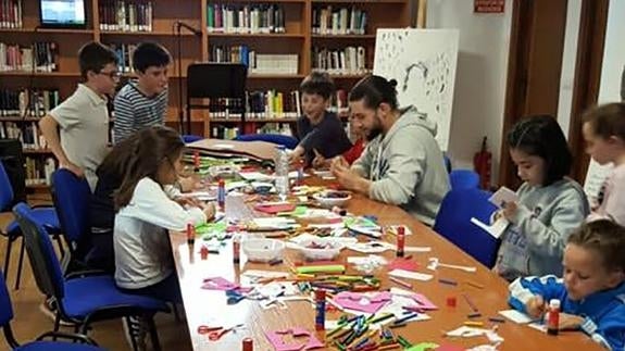 Bajo la dirección de varios monitores de la Casa de la Cultura, alrededor de 25 niños pasaron la tarde en la biblioteca municipal realizando varias actividades, todas ellas relacionadas con el mundo de la lectura y del libro.