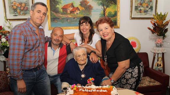 El pasado jueves 16 de junio, la Abuela de Valverde de Leganés, María Masera Reyes, cumplió 100 años. La valverdeña, es la persona más longeva de la localidad desde el 2014 tras el fallecimiento de Cipriana Gemio Vinagre; María se encontraba muy contenta y feliz por dicho cumpleaños y por la fiesta sorpresa que le organizaron sus familiares y amigos.