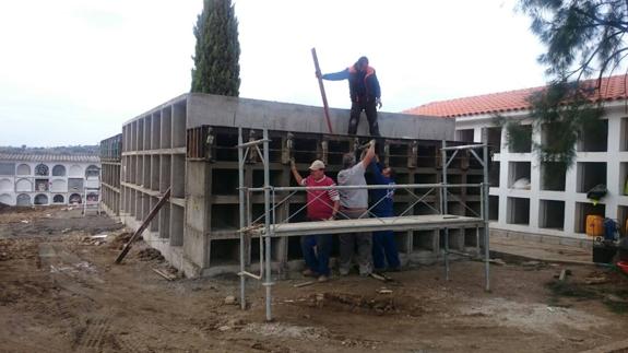 En los laterales del nuevo bloque se construyen columbarios destinados a urnas para cenizas y osarios para restos óseos.