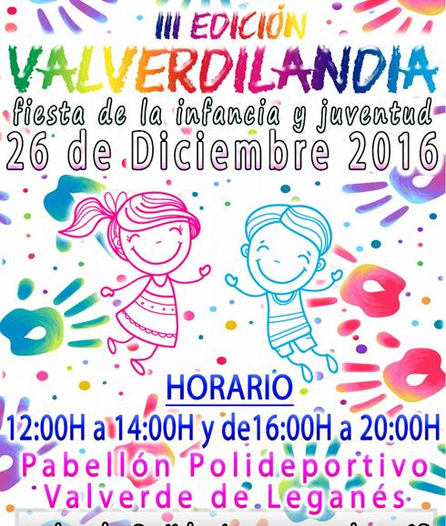 La tercera edición de Valverdilandia se celebrará este lunes 26 de diciembre, en el pabellón polideportivo de Valverde de Leganés. Las puertas se abrirán a las 12.00 hasta las 14.00 y de 16.00 a 20.00 horas.