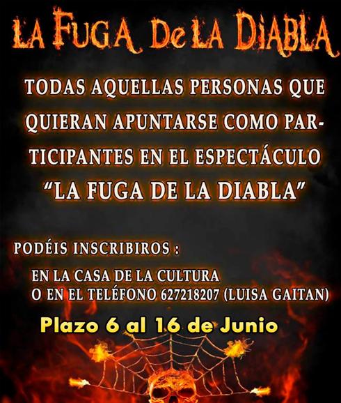 Tras las primeras reuniones con los diferentes organizadores y participantes en la fiesta de La Diabla, declarada como Fiesta de Interés Turístico Regional, se ha abierto el plazo para inscribirse como participantes en dicho evento.