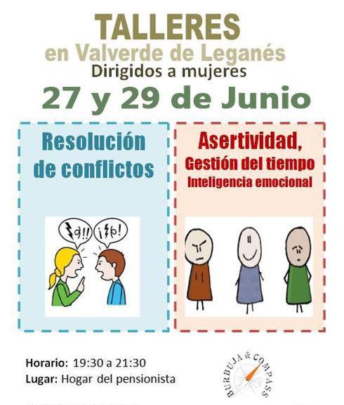 Los talleres reciben los nombres de Resolución de conflictos y Asertividad, gestión del tiempo e inteligencia emocional.