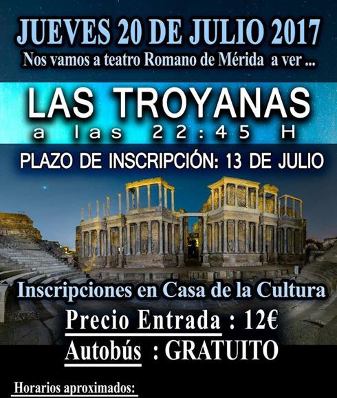 Por dicho motivo se va a organizar un viaje a la ciudad extremeña para el próximo jueves 20 de julio, a ver la obra de teatro Las Troyanas.
