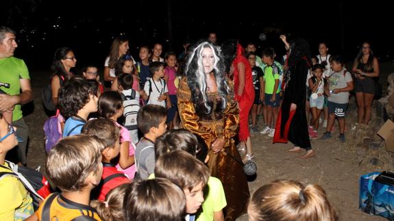 En ese mismo lugar pudieron ver un corto animado sobre brujas y hechizos. Una vez terminado y después de recoger algunos caramelos, el grupo marchó hacia el Cerro de los Mártires. En primer lugar, lo rodearon en la oscuridad de la noche y las estrellas. Tras rodearlo entraron en la parte más alta desde donde se podían había vistas de la localidad de bastante belleza y donde se encontraron, entre las ruinas de la ermita del cerro, a un grupo de brujas que realizaron un hechizo para evitar que La Diabla se llevara preso a alguno de los pequeños.