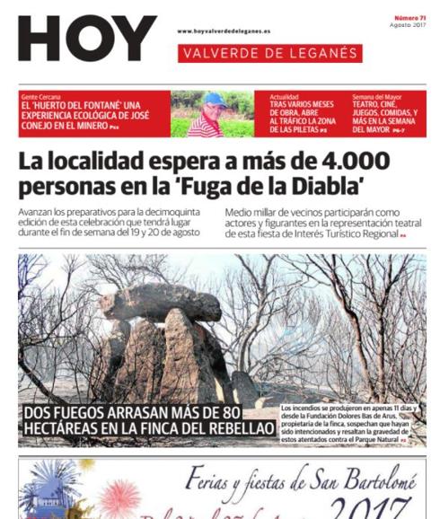 A lo largo de este miércoles 16 de agosto se ha publicado la edición número 71 del periódico en papel de HOY Valverde de Leganés que será repartida por los establecimientos públicos y todas las empresas anunciantes de la localidad y que hacen posible, gracias a su colaboración económica, que este medio continúe existiendo.