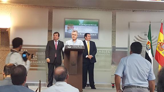 La firma estuvo presidida por el presidente de la Junta de Extremadura y el presidente de la Fempex (Federación Extremeña de Municipios y Provincias), Francisco Buenavista, quien animó a todos los alcaldes extremeños «a dar un paso más en nuestro compromiso con el ferrocarril», utilizando los medios a su alcance en el ayuntamiento «para sensibilizar y concienciar a la ciudadanía acerca de la importancia de esta reivindicación para la región».