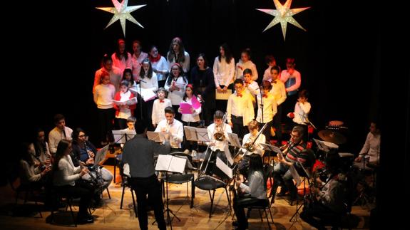 Tras ello fue el turno del coro de la Escuela de Música, con los alumnos de lenguaje musical, que cantaron Hallelujah de Leonard Cohen. Seguidamente, al coro se le unió la Banda Juvenil y juntos interpretaron Ave María de Caccini y Happy Christmas de John Lennon.