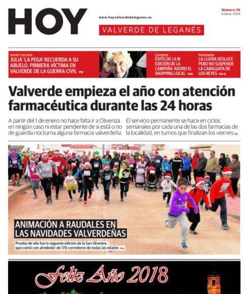 La edición número 76 de Hoy Valverde de Leganés se ha publicado este lunes 15 de enero. Será repartida por los establecimientos públicos de la ... localidad y por las empresas anunciantes que hacen posible, gracias a su colaboración económica, la existencia de dicho medio.
