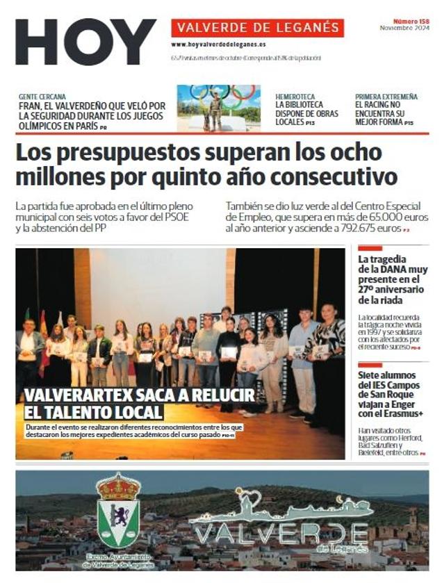 Este viernes 15 de noviembre ha sido publicada la edición número 158 de HOY Valverde de Leganés, que recoge las informaciones más destacadas de las ... últimas semanas. Los 2.000 ejemplares impresos fueron repartidos por los establecimientos públicos y en las empresas anunciantes en el Hiperlocal que hacen posible su existencia desde septiembre de 2011.