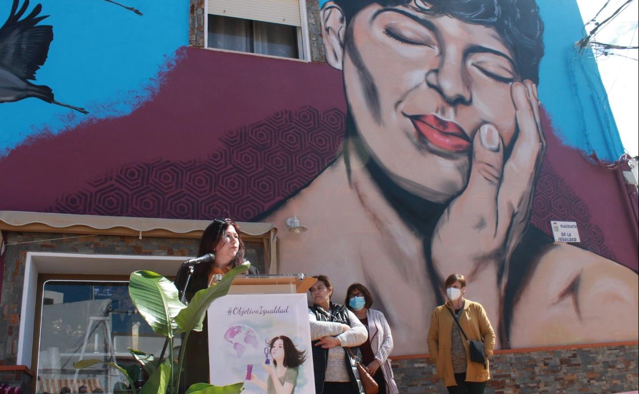 La vicepresidenta de la Asociación de Mujeres, Isabel Trejo, dio la bienvenida a los ciudadanos allí reunidos y dio paso a la encargada de la inauguración, la vecina Belén Rastrollo Palacios. La valverdeña agradeció la presencia de todos y manifestó el honor que sentía, como valverdeña y como artista, de poder inaugurar esta semana en esa plaza tan emblemática con el mural tan bello que Alex de la Fuente pintó el año pasado. Esta pintura refleja la lucha por la igualdad entre hombres y mujeres, el rechazo de cualquier tipo de violencia sobre la mujer y la libertad para que las mujeres no se vean sometidas a la discriminación solo por el mero hecho de ser mujer.