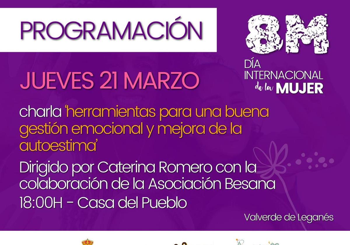 Este jueves 21 de Marzo, a las 18.00 horas, la Casa del Pueblo acogerá una charla enfocada en la gestión emocional y el fortalecimiento de la autoestima, como cierre de las actividades programadas en conmemoración del Día Internacional de la Mujer, del pasado 8 de marzo