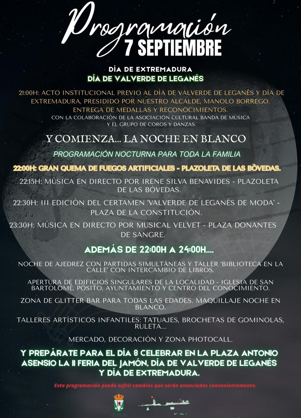 Este domingo, 7 de septiembre, Valverde de Leganés vivirá una velada muy especial con la celebración de su Noche en Blanco 2025, que servirá como la antesala perfecta al Día de Valverde y de Extremadura.