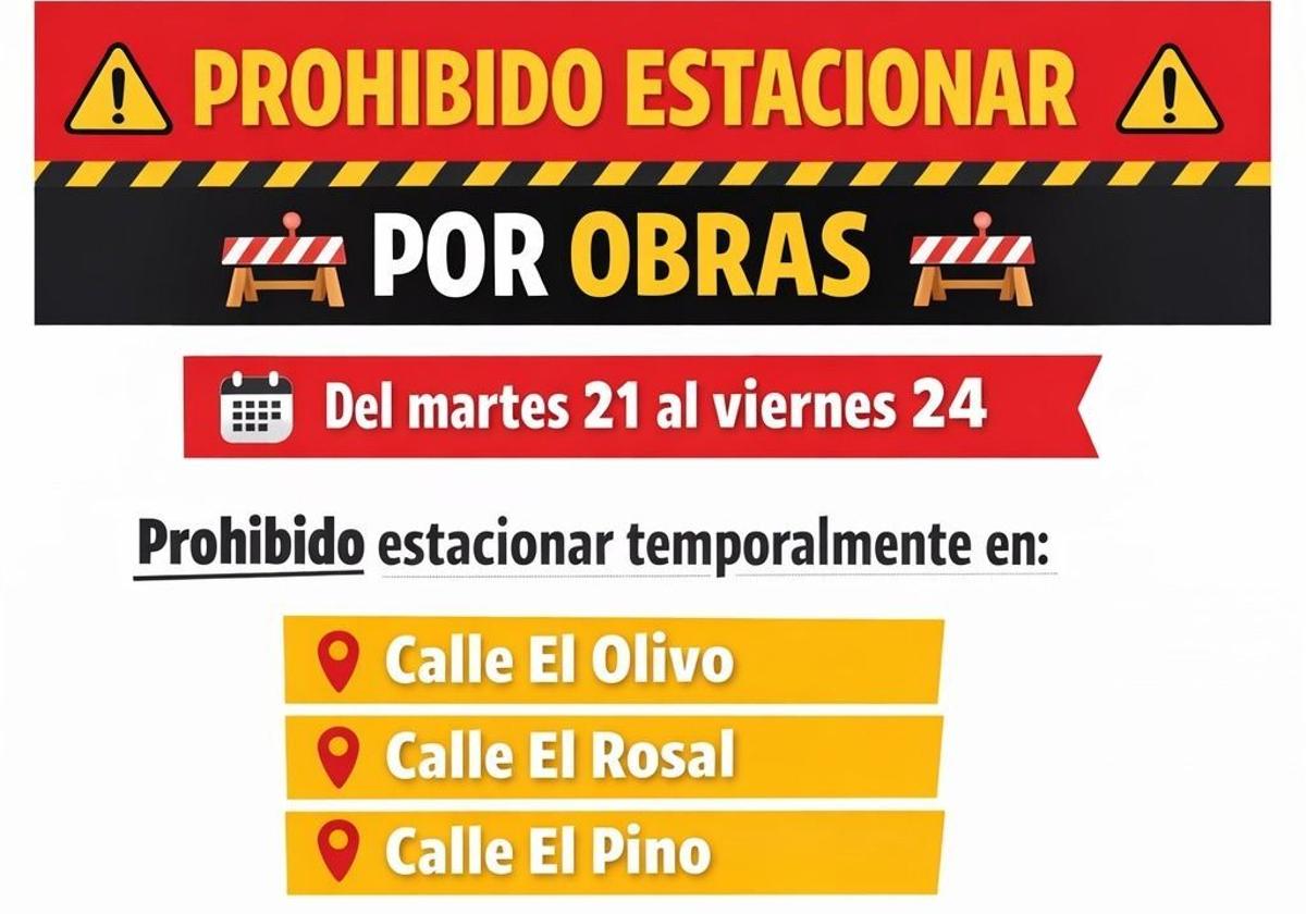 En concreto, la restricción afecta a la calle El Olivo, la calle El Rosal y la calle El Pino, donde no se permitirá aparcar desde este martes 21 hasta el viernes 24 de abril.