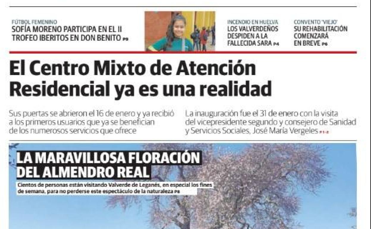 Por otro lado, también se informa de una de las noticias más importantes de la localidad en los últimos meses con la puesta en marcha del Centro Mixto de Atención Residencial (CMAR), que abrió sus puertas el 16 de enero recibiendo a sus primeros usuarios y fue inaugurado el 31 de enero. Este último día, desgraciadamente, quedará marcado por el fallecimiento de la joven valverdeña Sara Montero Moreno en el incendio de un piso de estudiantes en Huelva, información que también destaca en este número.