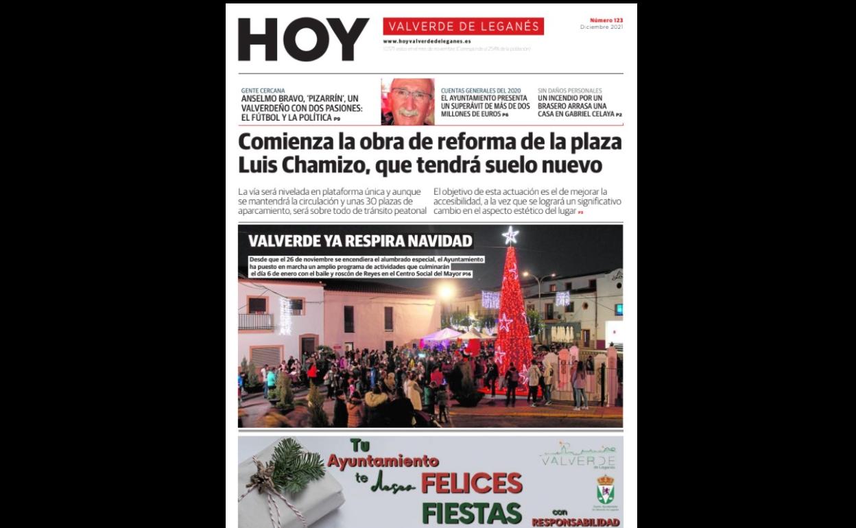 Este sábado 11 de diciembre ha salido a la calle la edición número 123 de Hoy Valverde de Leganés, que recoge las informaciones más importantes ... de las últimas semanas. Será repartida por todos los establecimientos públicos y por las empresas anunciantes en el Hiperlocal, que hacen posible su existencia desde septiembre de 2011.