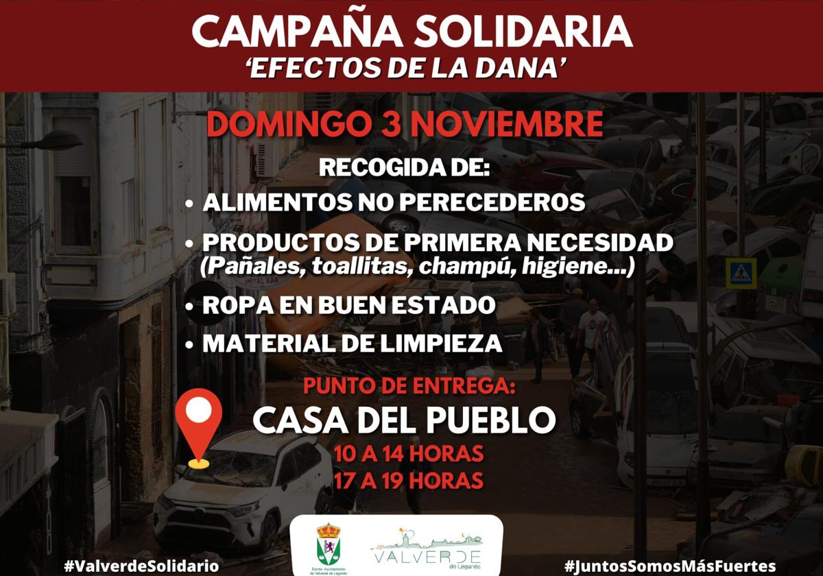 El Ayuntamiento de Valverde de Leganés ha informado que este domingo 3 de noviembre, en horario de 10.00 a 14.00 horas y de ... 17.00 a 19.00 horas, la Casa del Pueblo permanecerá abierta para la recogida solidaria de diversos productos.