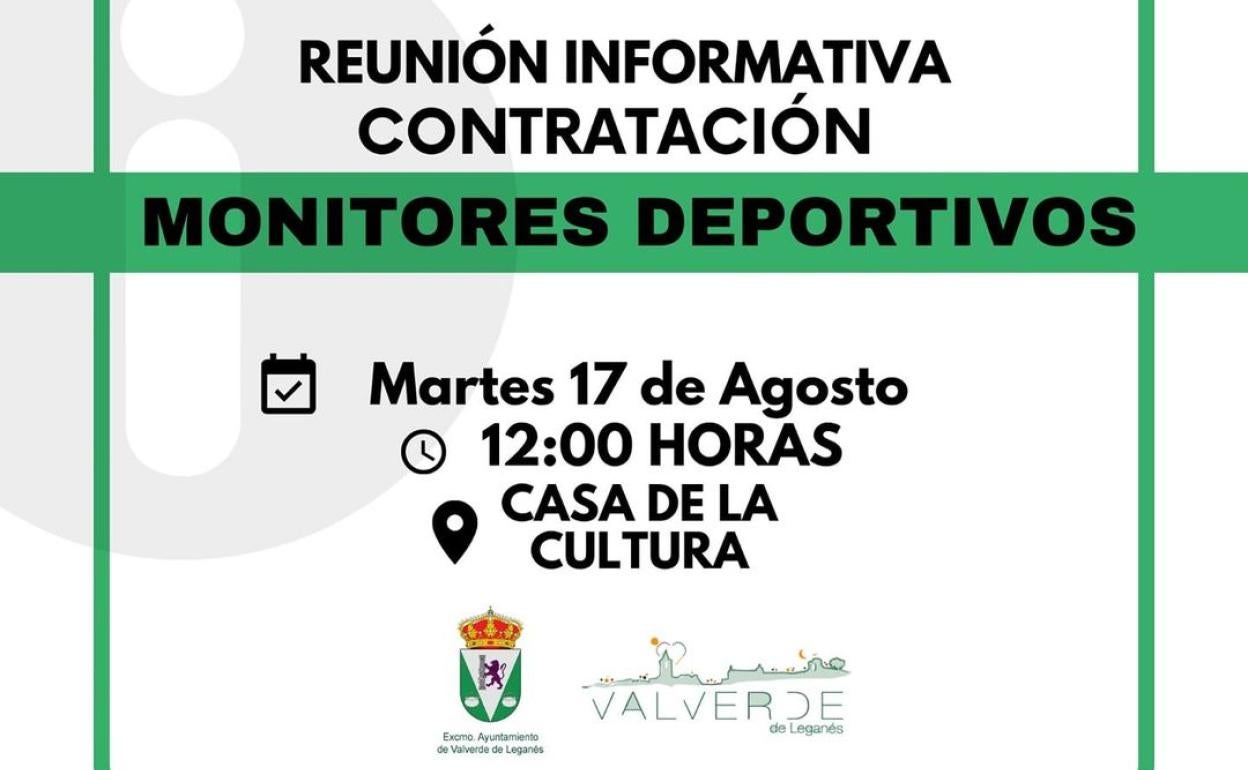 La Casa de la Cultura acoge hoy martes, a partir de las 12.00 horas, una reunión informativa para la contratación de nuevos monitores deportivo.