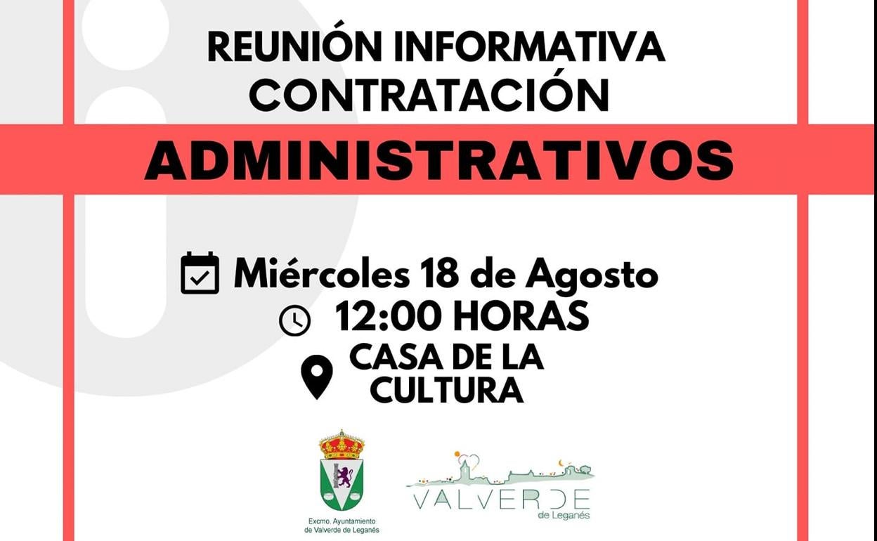 Este miércoles, 18 de agosto, la Casa de la Cultura acogerá a partir de las 12.00 horas una reunión informativa para la contratación de ... nuevos administrativos y auxiliares administrativos.