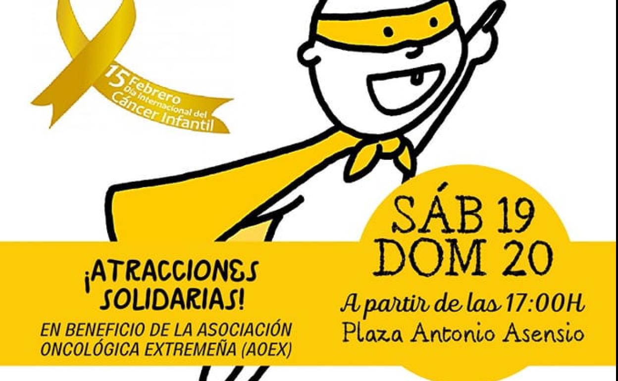 Durante este sábado y domingo, 19 y 20 de febrero respectivamente, la familia Marín – Rojas instalará en la plaza Antonio Asensio una pista de juegos ... y un castillo hinchable para los más pequeños, cuya recaudación será donada en su totalidad a AOEX, la Asociación Oncológica Extremeña, para la investigación del cáncer infantil.