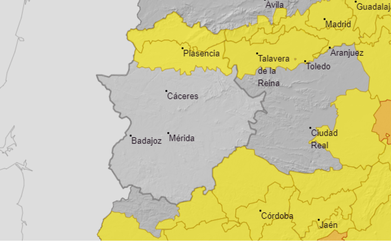 Además, solo hay alerta amarilla en la zona norte de Extremadura, por lo que desaparece de las Vegas del Guadiana.