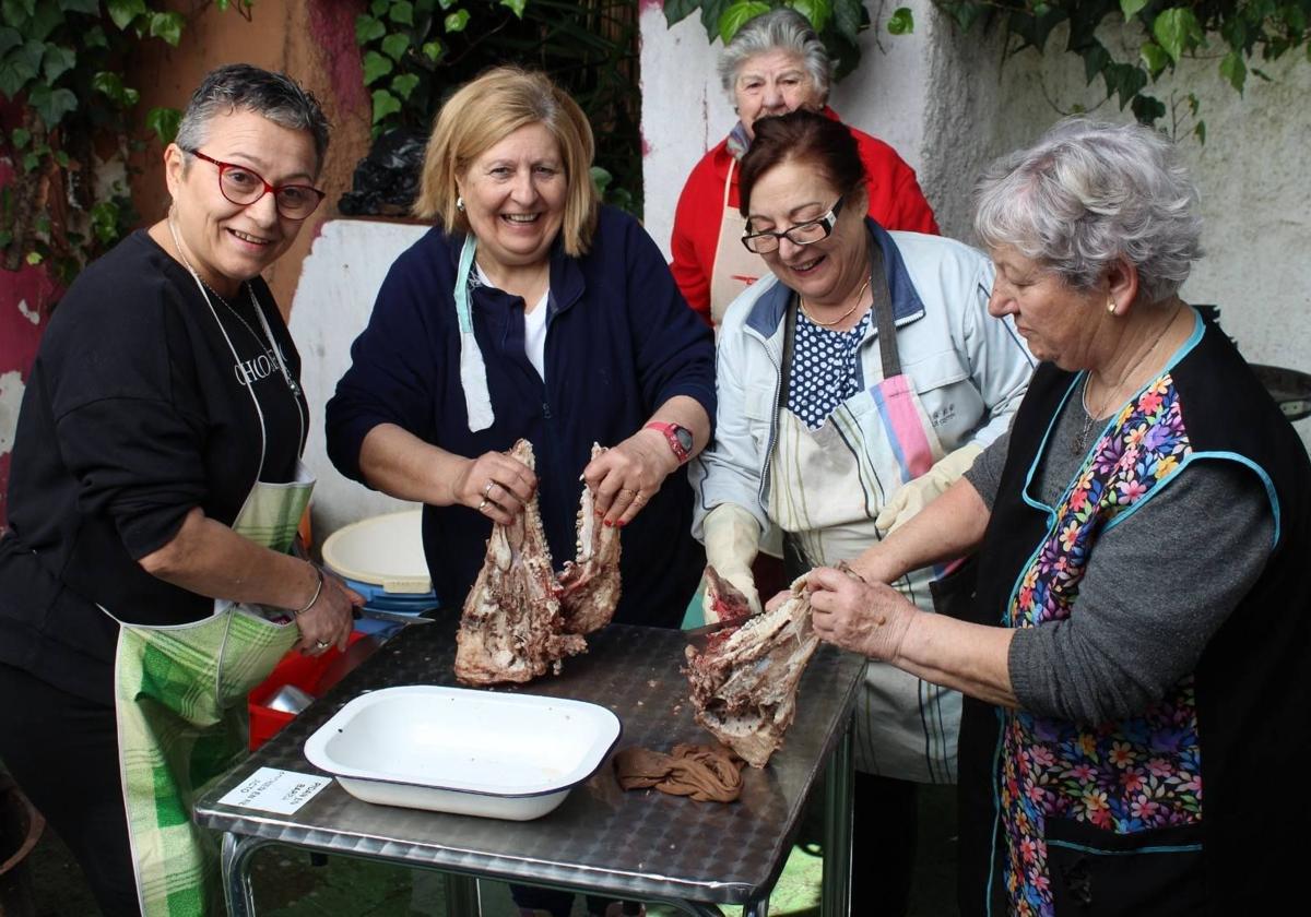 Los mayores han compartido su conocimiento para explicar los diferentes pasos existentes en una matanza extremeña, guiando a los asistentes, explicando las técnicas tradicionales, los utensilios utilizados y la importancia de cada uno de los pasos.