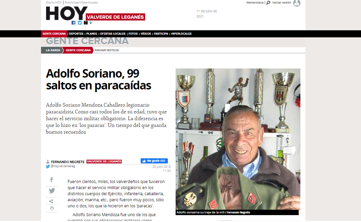 Por último, la información que más visitas ha recibido fue 'Detenido un vecino de Aljaraque (Huelva) por robo con fuerza'. Seguidamente aparece la información sobre 'Adolfo Soriano, 99 saltos en paracaídas', en tercera posición está '20 años después la piscina municipal vuelve a tener bar' y en cuarto lugar, 'Un valverdeño, el número 1 de la Seguridad Social'.