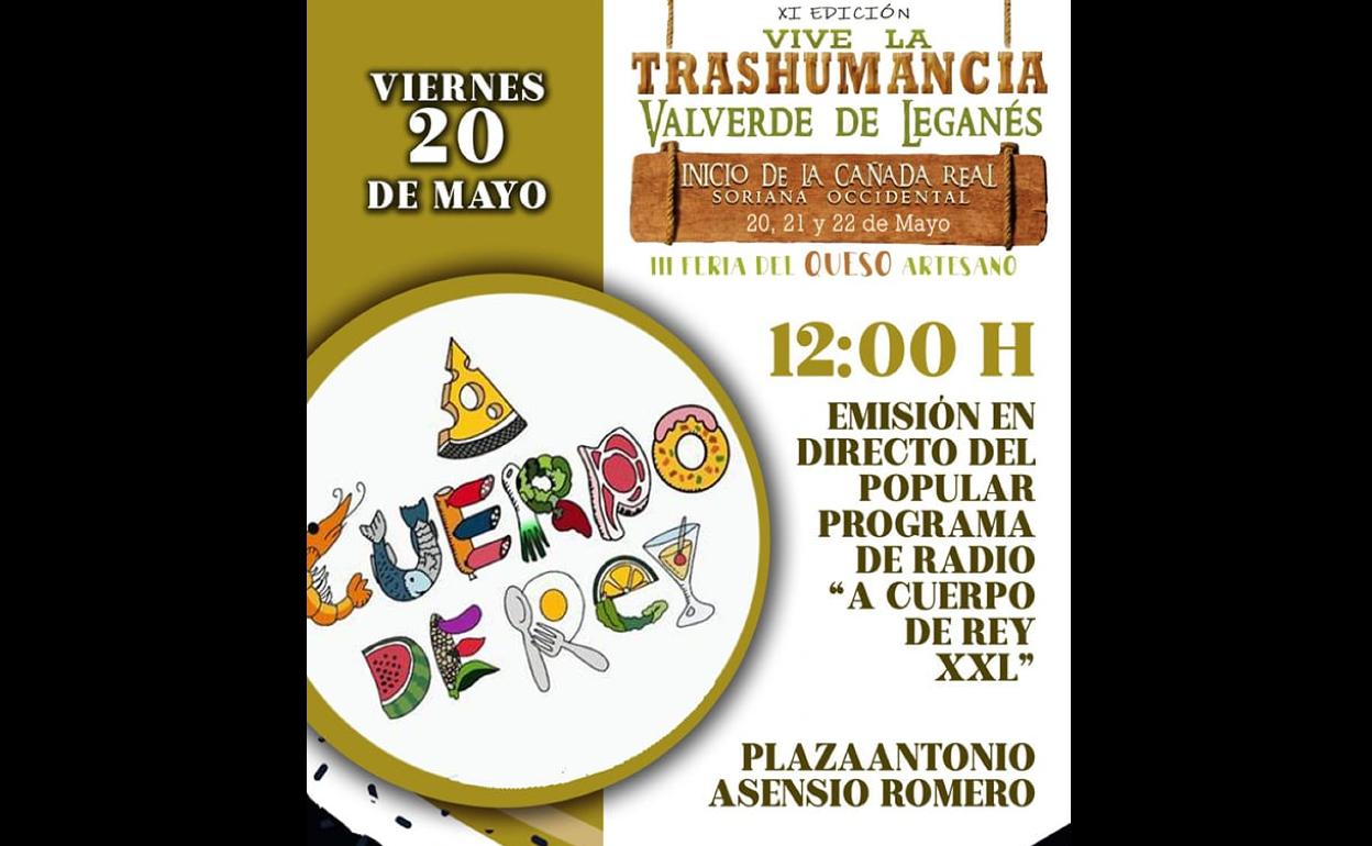 Este programa está liderado por Javi Moreno y Jaime Ruiz Peña y en él intervendrán Manolo Borrego, alcalde de Valverde de Leganés; Manuel Torres, presidente de la Asociación Amigos de las Vías Pecuarias; Isa Comerón, representante del grupo de hostelería del municipio; Juan Trejo, responsable de la empresa Quesería Valtrejo; y Fernando Negrete, cronista oficial de Valverde de Leganés.