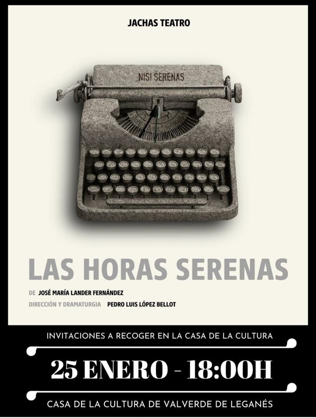 La Casa de la Cultura de Valverde de Leganés acoge el próximo domingo 25 de enero, a las 18.00 horas, una nueva cita con el teatro gracias a la llegada de la compañía Jachas, que presentará su obra más reciente, 'Las horas serenas'.