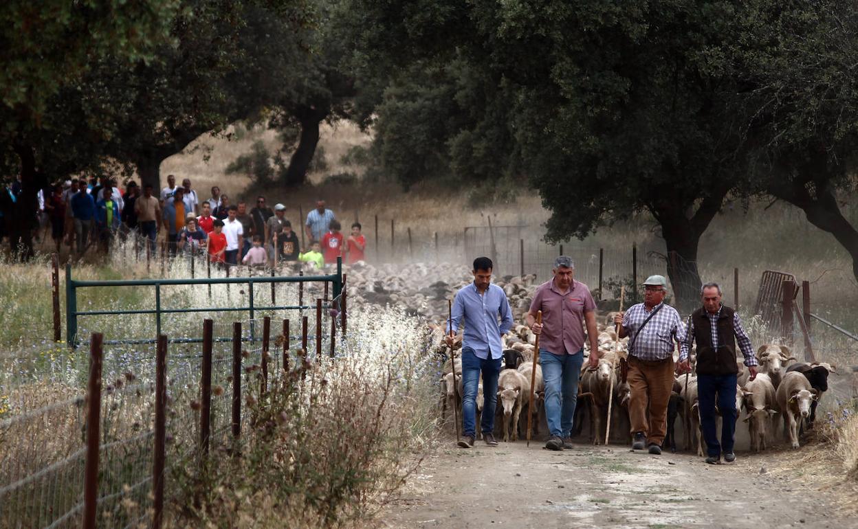 La actividad por excelencia de estas jornadas llegó en la mañana del domingo, que estuvo más fresca de lo habitual. Antes se repusieron fuerzas con el desayuno del pastor ofrecido en el Albergue Ganadero Gregorio Salcedo, con unas ricas migas junto a café y chocolate. Sobre las 10.00 horas se inició el recorrido, con alrededor de 600 animales. En cabeza, dirigiendo el rebaño, Manolo 'Calderón', Manuel Torres y Manolo Borrego, alcalde de Valverde.
